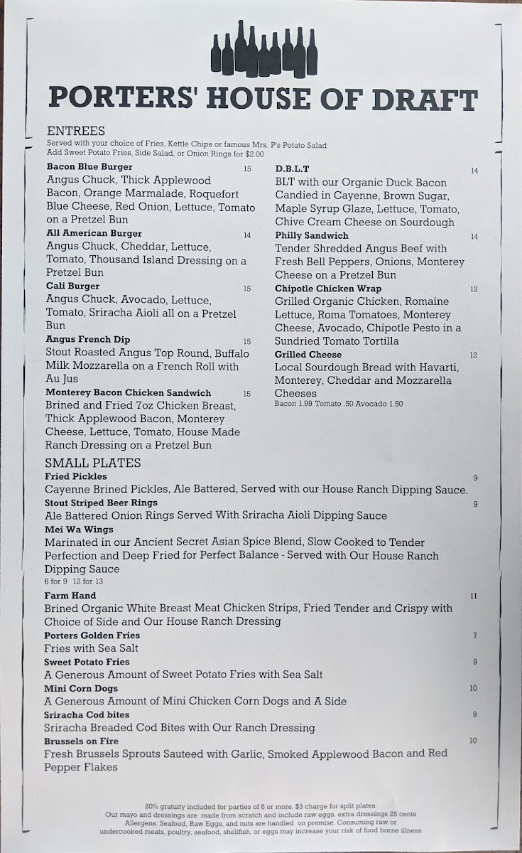 Located in the heart of Roseville, California, Porter's House of Draft offers a delightful mix of flavors in a warm, welcoming atmosphere. Their menu features a variety of comforting soups, including the ever-changing Soup of the Day and the savory Chile Verde, perfect for warming up on colder days. Each dish is crafted with care, showcasing quality ingredients that resonate with local tastes.